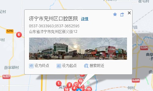 济宁站90米向西北步行 到 火车站1站乘 4路 (平店北方向) 到 汽车南站560米向东步行 到 济宁汽车总站8站乘 C6012路 (兖州汽车站方向) 到 济宁高新技校3米向东步行 到 浩柯矿业10站乘 兖州6路 (火车站方向) 到 德创经贸170米向东南步行 到 济宁市兖州区口腔医院
