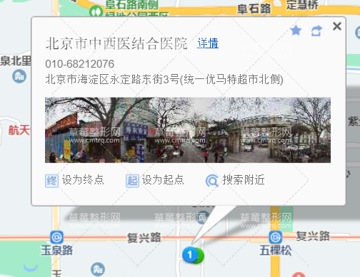 2从翠微小区沿万寿路向南行驶1.4公里 ,右转进入太平路,沿太平路向西行驶1.8公里 ,右转进入西四环中路辅路,沿西四环中路辅路向北行驶370米 ,左转进入北太平路北太平路 960米,沿北太平路行驶690米 ,右转进入枣林路,沿枣林路向北行驶220米 ,左转进入永定路东街,沿永定路东街向西行驶50米 ,右转沿道路向北行驶3米 ,到达北京市中西医结合医院。