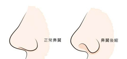鼻翼後縮鼻翼後縮會使得正面露出鼻孔太多,而賦予人鼻孔大的印象
