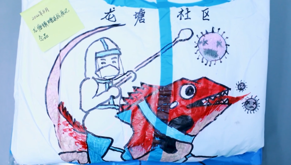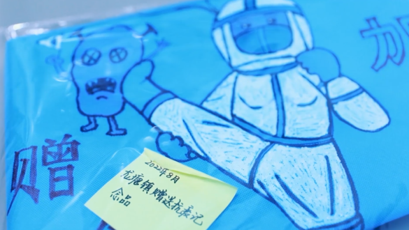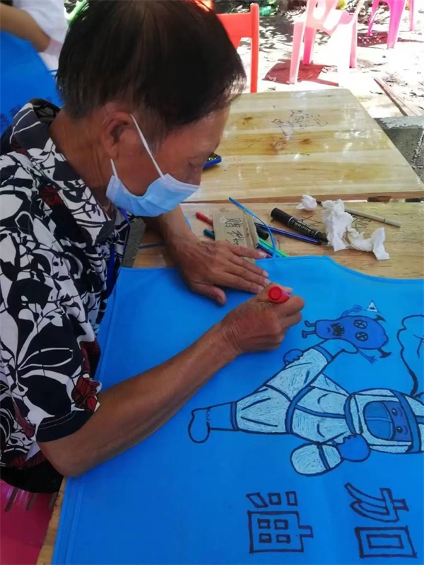 龙塘镇居民手绘抗疫马甲纪念品