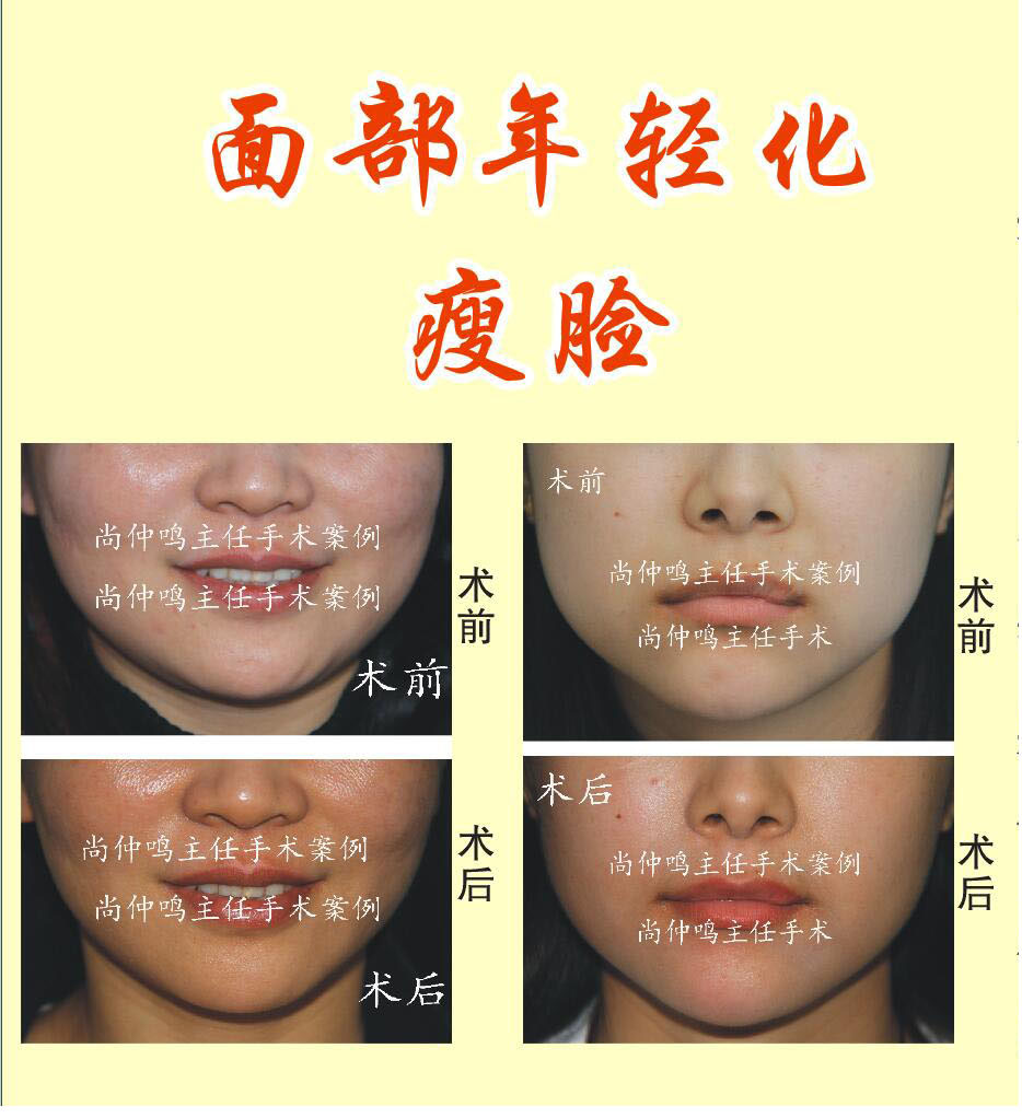 瘦脸:现代多数青年女性以面部清秀、清纯为美,且梦寐以求。为了满足求美者的合理的心理需求,尚仲鸣主任根据求美者的个体特点分别推出了注射美容、低温面部精确雕塑、微创去除颊脂垫、微创面部提升等技术,单独或综合使用,获得良好的美容效果,深受欢迎。
